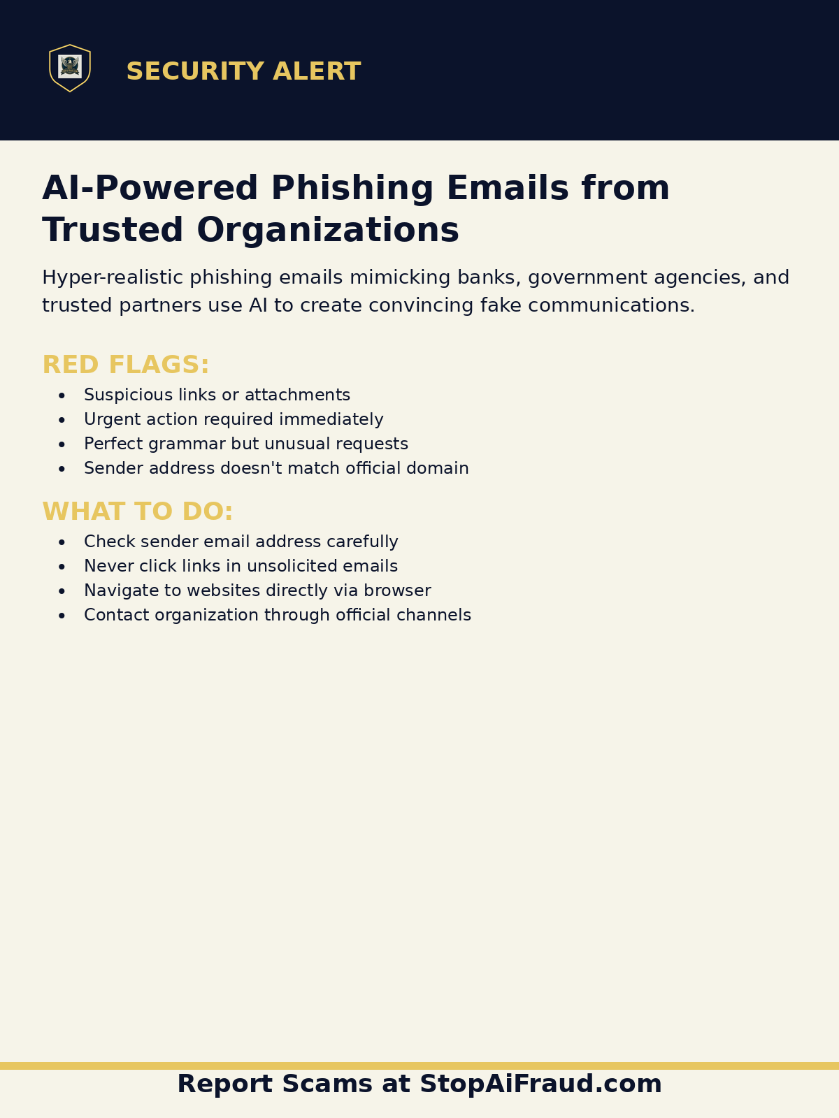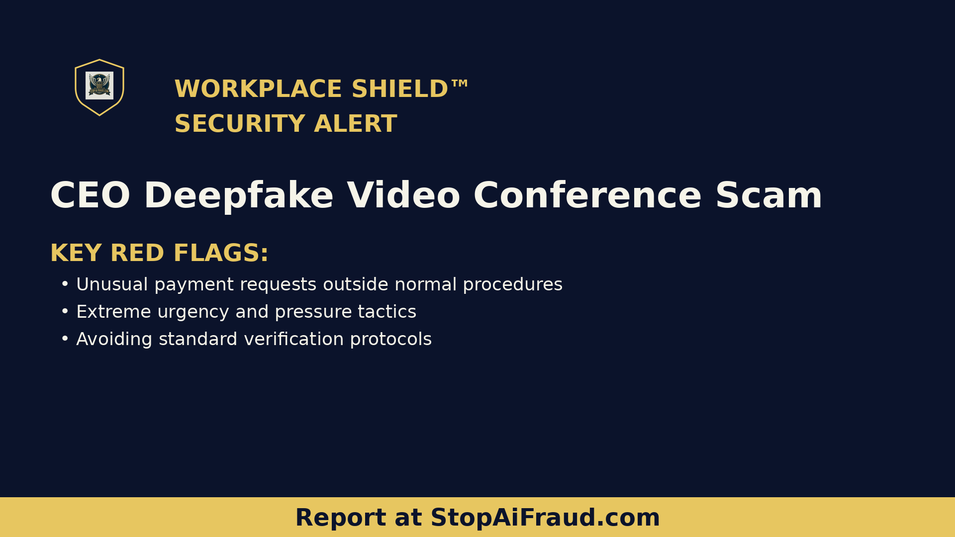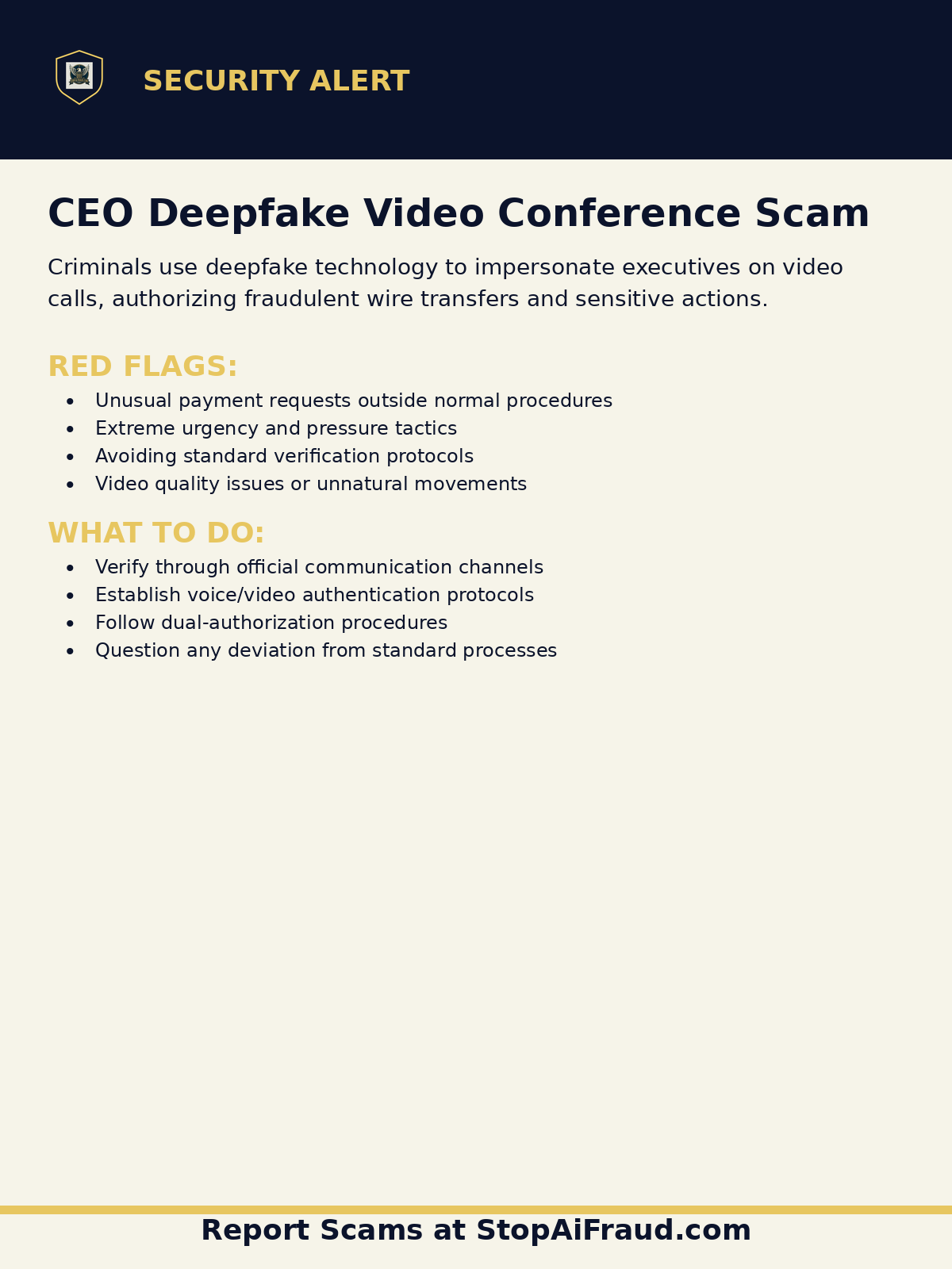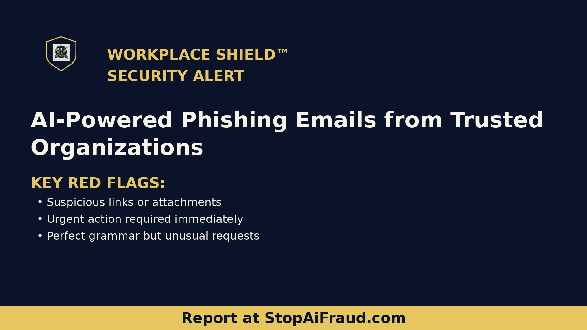 Free, production-ready materials for HR, IT, and Compliance teams to educate employees about AI-powered fraud threats. No partnership required — download and distribute internally today.